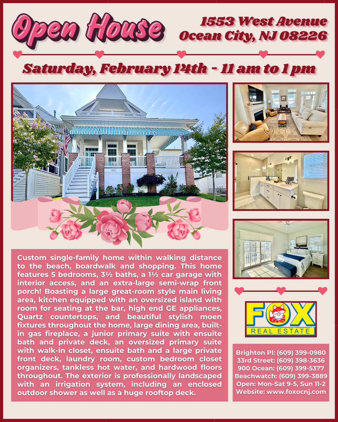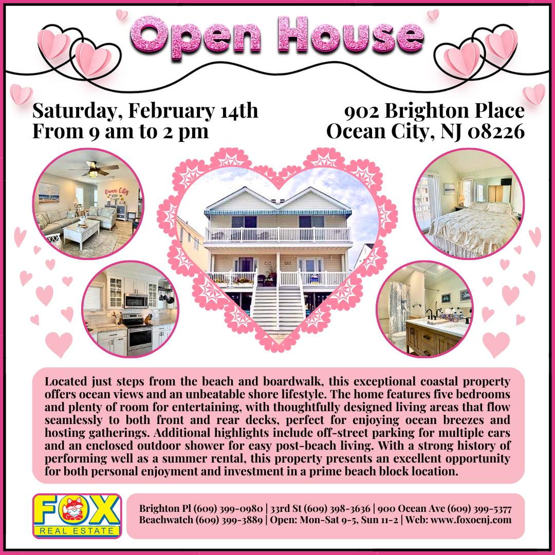 OPEN HOUSE THIS VALENTINE’S DAY! Saturday, February 14th from 9am to 2pm at 902 Brighton Pl., OCNJ. 5...