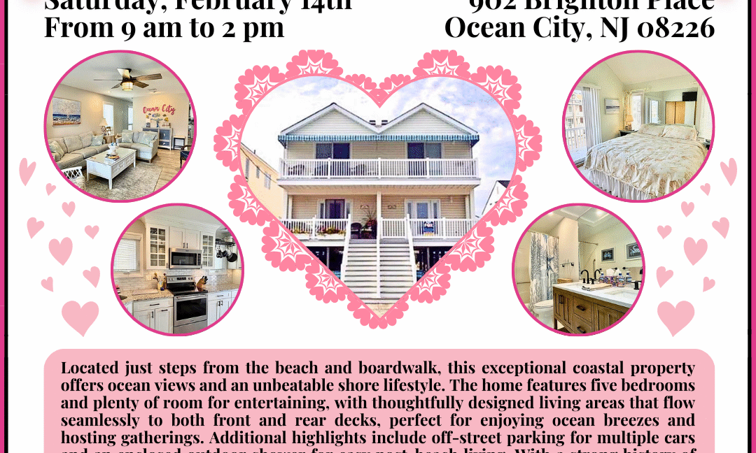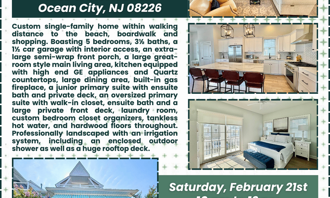 OPEN HOUSE! Saturday, February 21st from 10am to 12pm at 1553 West Ave., Ocean City. Single family home boasting 5 bedrooms, 3½ bathrooms, a semi-wrap around porch, large great room, and equipped kitchen featuring high-end appliances, built-in fireplace, a 1½ car garage, and much more. A must see! Stop by for a tour of this…