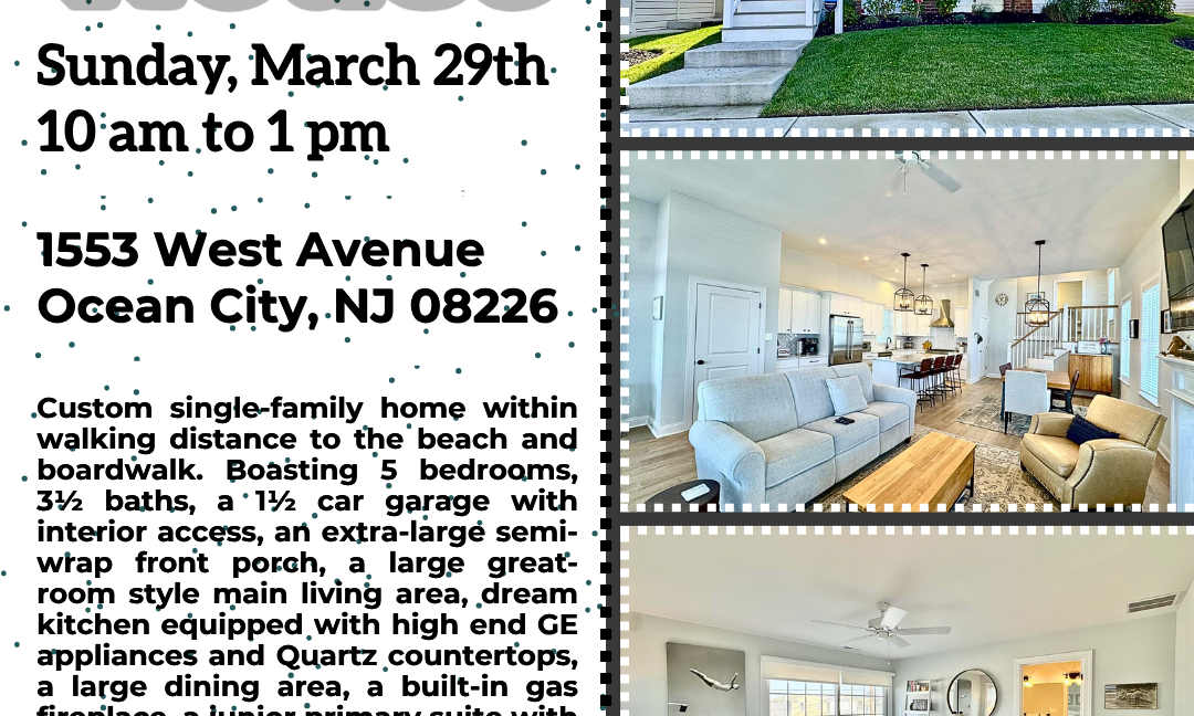 Calling all realtors! DOUBLE BROKER’S OPEN HOUSE this Tuesday, March 31st from 12:30 pm to 2 pm. Locations: 805 Parkridge Road, 1st Floor, Ocean City – 4 bedrooms, 2 baths New Construction custom built by Clark Edwards featuring hardwood flooring throughout, an upgraded trim package, and natural cedar siding. 1553 West Avenue – 5 bedrooms,…