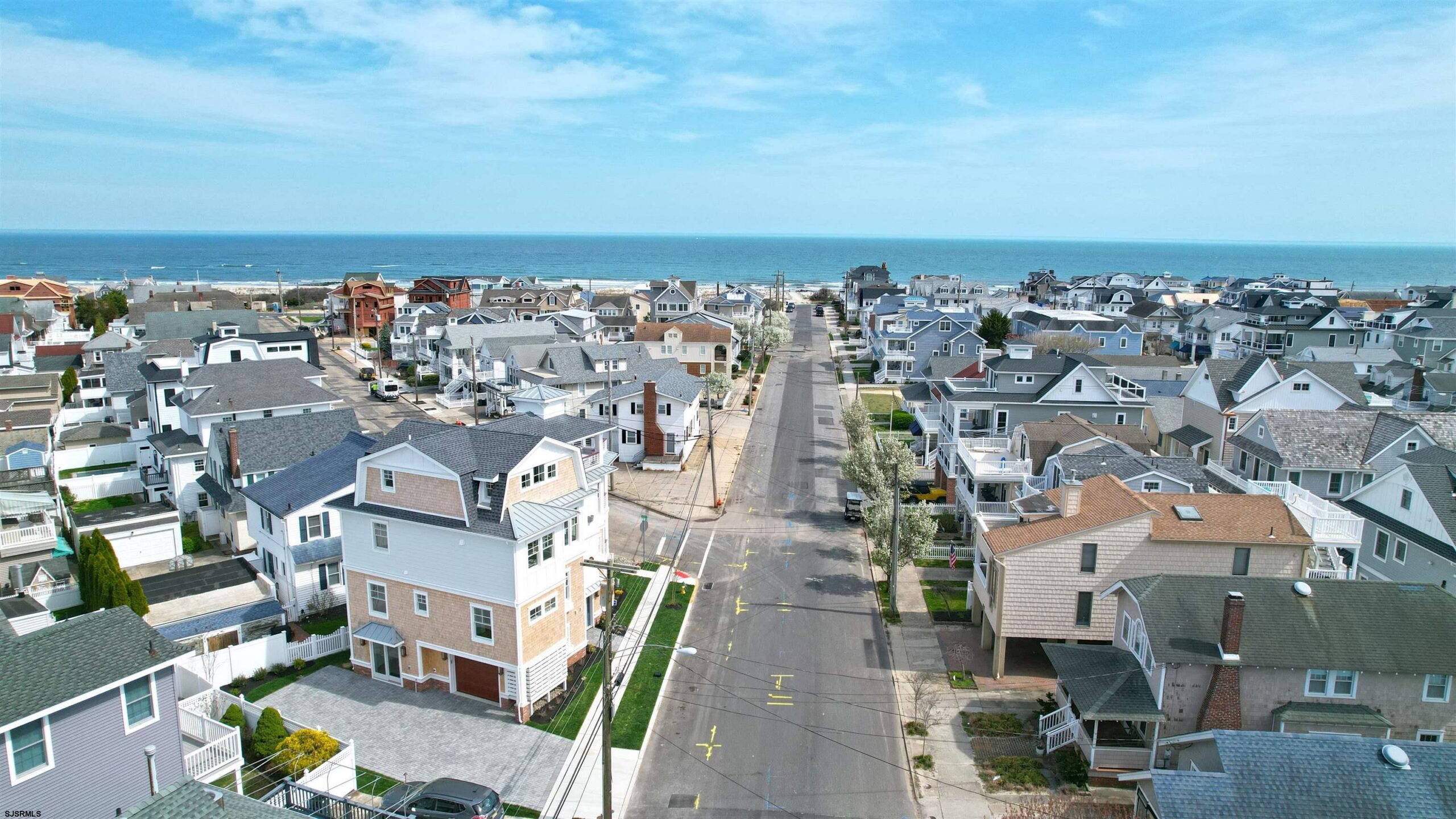 Exceptional new construction, single family coastal home with natural cedar shakes combined with white plank Masonite siding, Anderson 400 series windows throughout and Anderson sliders leading out to the decks at every level. This Coste built home featuring 5 bedrooms and 3.5 elegantly appointed bathrooms, designed with a unique architectural vision and luxurious finishes throughout featuring an extensive trim package throughout the home. The open-concept layout is ideal for entertaining, seamlessly connecting the living, dining, and kitchen spaces, all complemented by upgraded GE Cafe Series appliances and refined detail. Enjoy outdoor living at its finest with three expansive decks offering stunning views and multiple spaces to relax or host guests. Additional highlights include a one car garage plus two off street parking spots on the apron. Ideally located just steps from North Street Beach and moments from the boardwalk, this home delivers a rare blend of style, comfort, and unbeatable location.